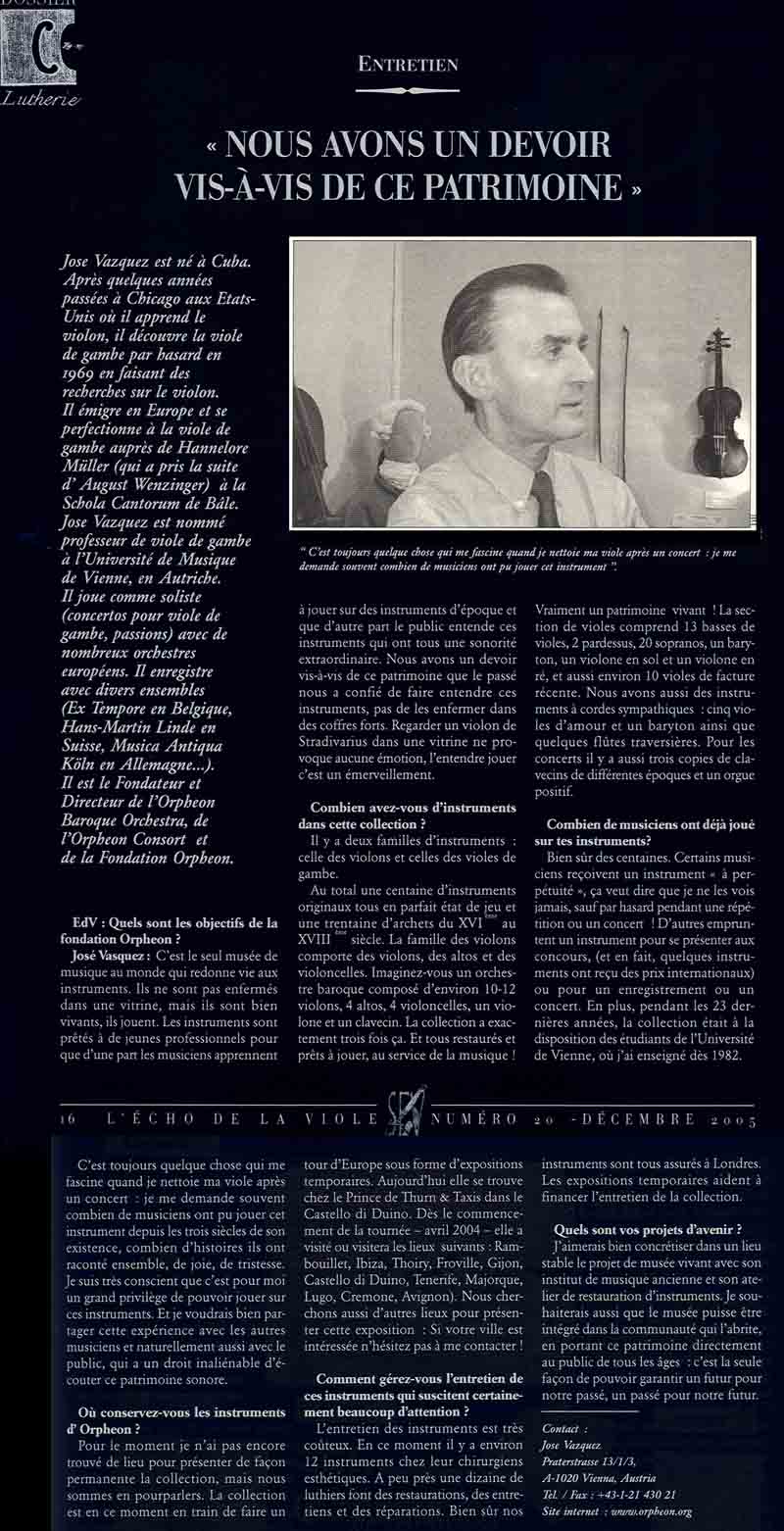 <<< José Vázquez dans l'Echo de la Viole de décembre 2005