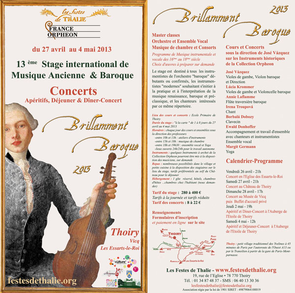 Tredicesima Academia Internazionale di Musica barocca (XVI°-XVIII° secolo) a Thoiry (Yvelines) - 27 aprile - 4 maggio, 2013