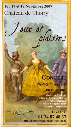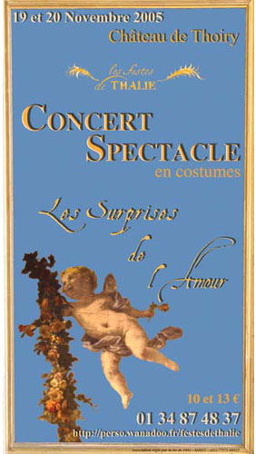 Depuis sa création en septembre 1998, l'Ensemble "les Festes de Thalie" a réalisé plusieurs Concerts-Spectacles publics alliant musique baroque, danse et théâtre.