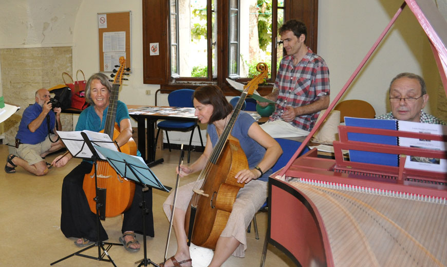 Master classes pour les Instruments à archet, le Chant, le Clavecin et la Basse continue sous forme d'ateliers et de cours individuels - Consorts de violes, Ensembles vocaux et instrumentaux.- Travail corporel pour instrumentistes et chanteurs Consorts de violes - Initiation à l’improvisation : Travail technique, interprétation, ornementation, diminutions, réalisation et accompagnement - Cours théoriques autour du répertoire instrumental et vocal des 16ème au 18ème siècle