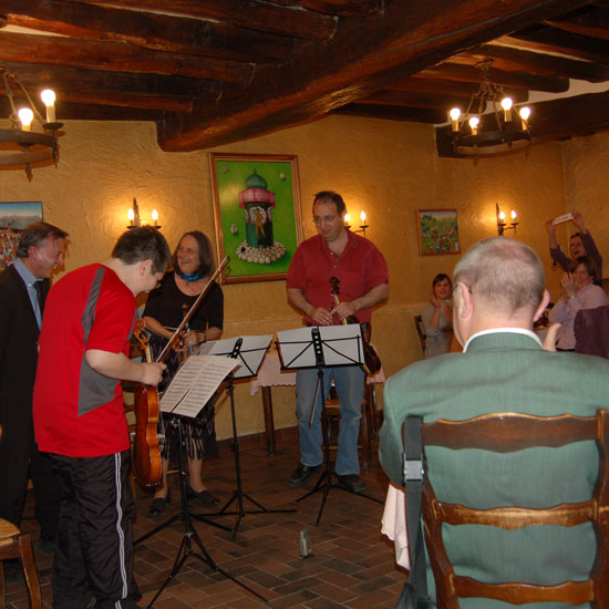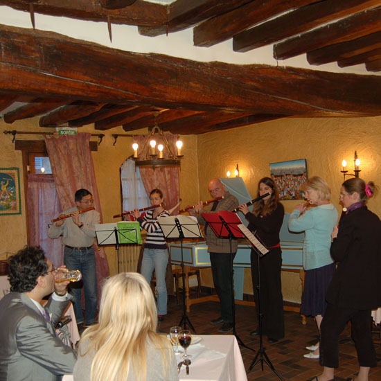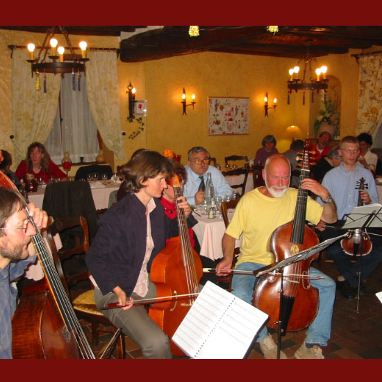 Elèves et professeurs du stage s'y retrouvent pour une soirée musicale informelle : une invitation à découvrir ou redécouvrir un répertoire souvent méconnu, dans une ambiance chaleureuse et gastronomique !
